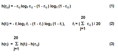 A entropia h(ri) das 19 correlaçõess ri,j calculadas para cada eletrodo ei, e associada a cada evento EVE de uma dada atividade cognitiva COG